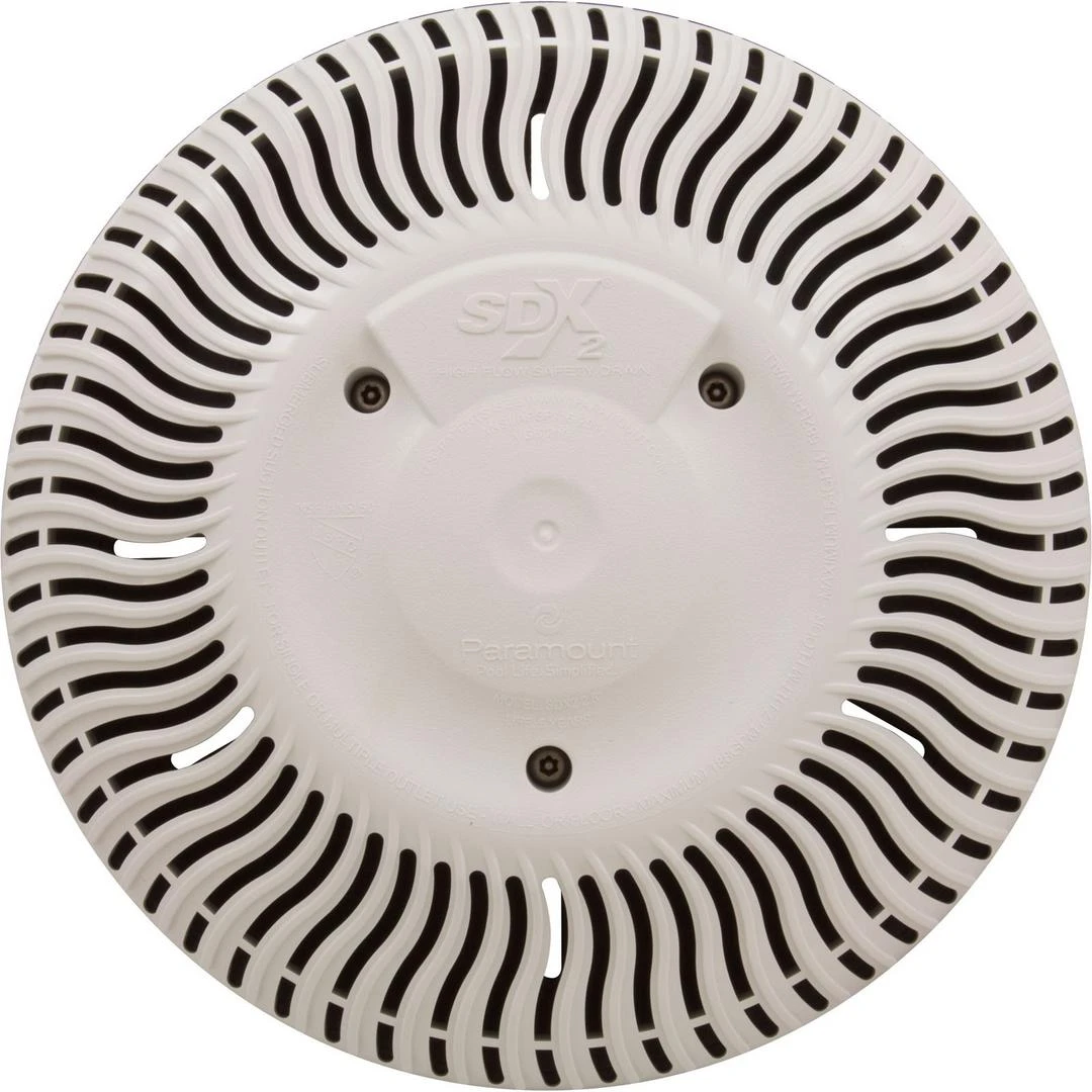 SDX2 is a high flow suction outlet suitable for use as a wall fitting and also as a floor drain when debris removal is not a concern. A Retro version is available to bring existing suction outlet covers into VGB compliance. SDX2 Retro fits existing plaster rings up to 10 inches in diameter. SDX2 boasts a flow rating of 188 gpm. on the floor and 154 gpm. on the wall making it compatible with most residential pumps up to 3 hp. SDX2 has a 1.396 feet per second velocity at the opening at a maximum listed 188 gpm.