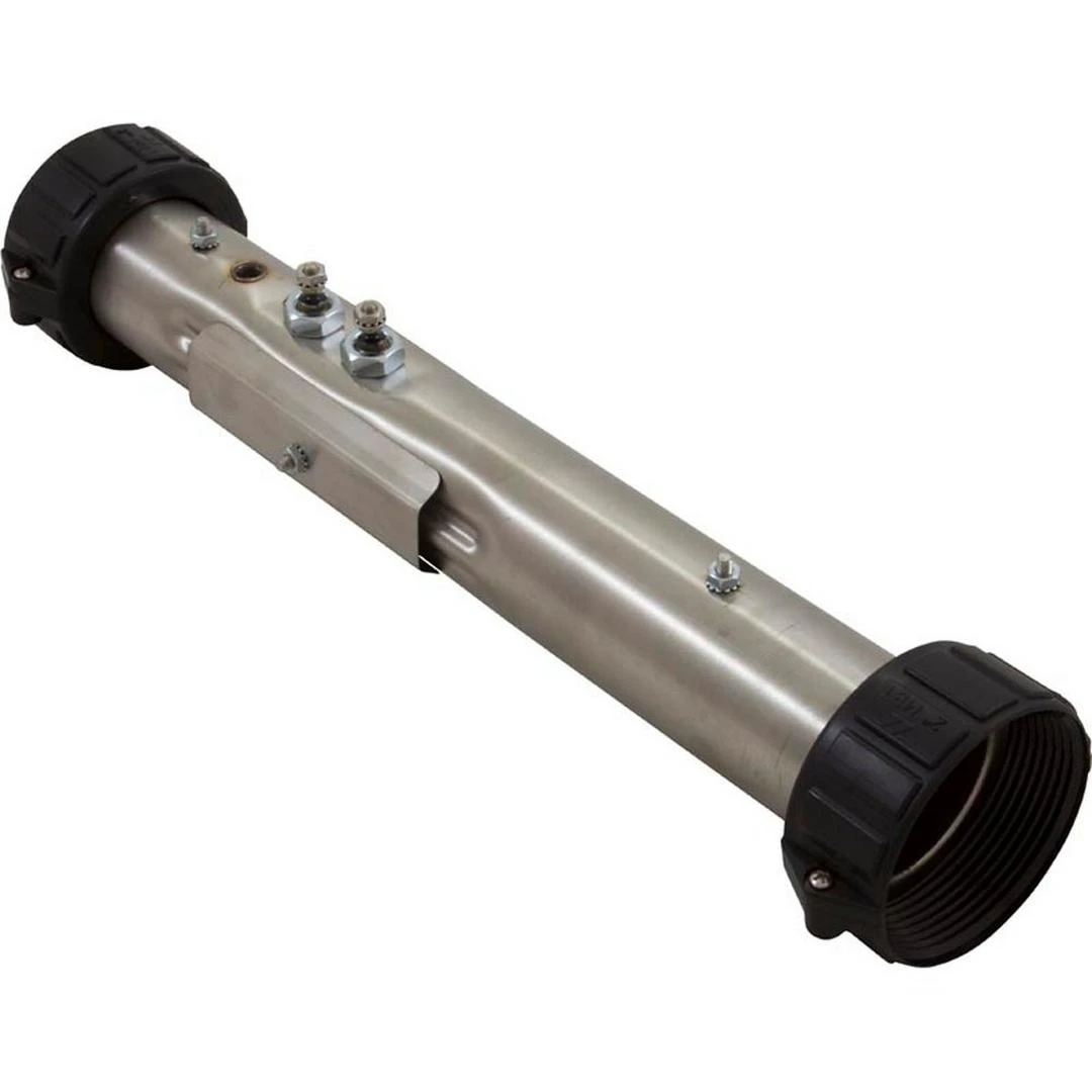 B24055Q replaces 5.5 kW heaters compatible with Sundance, Jacuzzi, and Sweetwater spas, replacing OEM heater. 15″” x 2″” stainless steel tube, includes 2″” unions and adjustable plate matches Pinnacle spa pack mounts. Refer to the measurements in the image for proper heater selection. Heater B24055Q replaces 20-00228, 611038, B24055Q, C2550-0056, C2550-0456, and fits AP-1, AP-1400, EP-1, LX-15 & LX-35 Control Systems. Compatible with Jacuzzi J230 after 2005, and J270, J280 spas after 2007 (without circulation pumps). Also compatible with many Sundance spa models from 1998-2007, before the availability of the Sundance SmartHeater.
