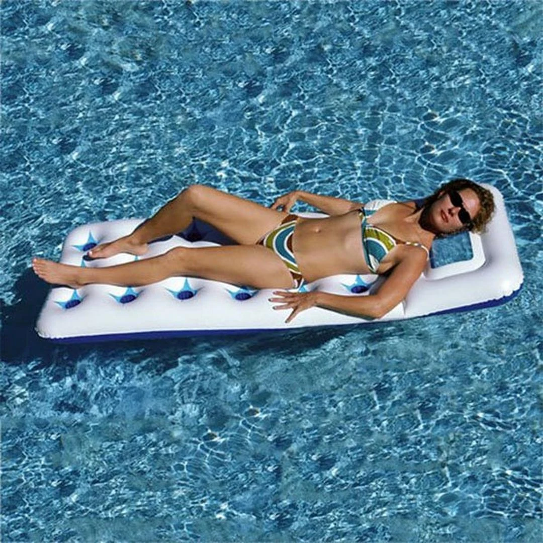 The Swimline Window Lounge has the classic 18 pocket French design, stylish white and blue colors, and a window built into the headrest so you can see underwater!